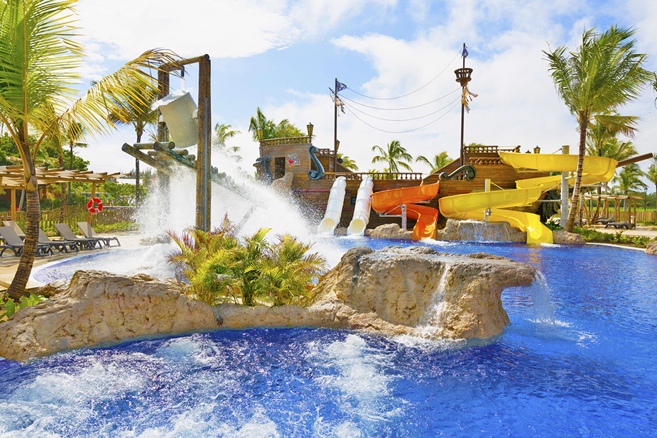 · Barcy water park for children with castles, slides, and waterfalls within the pool